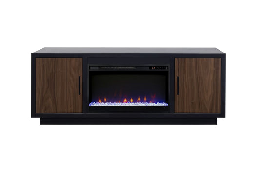 Aria 66 inch Fireplace TV Stand for TVs up to 80 inches, Minimal Assembly, Black and Walnut Finish