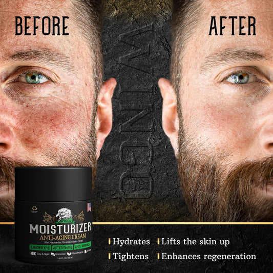 All In One Mens Face Moisturizer Cream After Shave Lotion for Men Anti Aging Cream with Vitamin B E Collagen Aloe Vera Organic Day Night Skin Care 1.85 oz