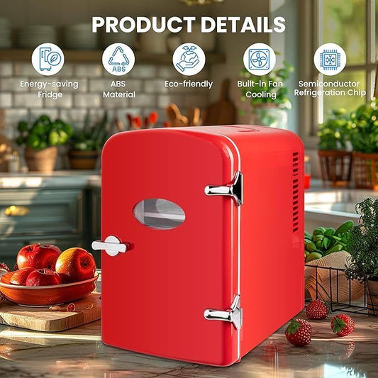 4L Portable Mini Fridge Warmer and Cooler Six 12oz Cans Compact Refrigerator, 100% Freon-Free & Eco Friendly, 4 L, Red