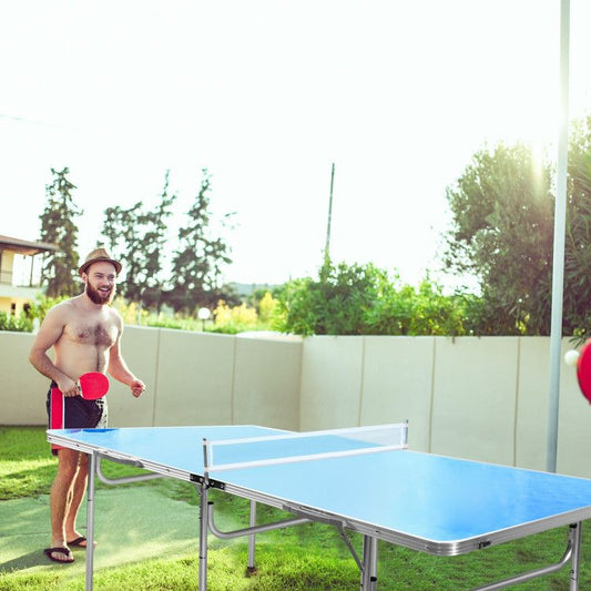 9ft Mid-Size Table Tennis Table Foldable & Portable Ping Pong Table Set for Indoor Games with Net, 2 Table Tennis Paddles and 3 Balls