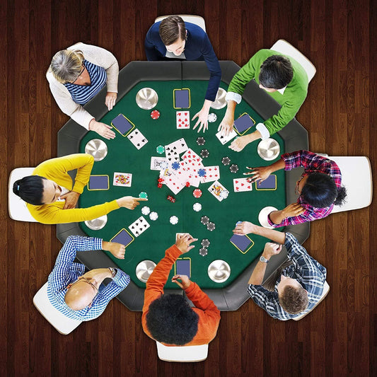 48" Octagon Folding Poker Table 8 Player Casino Texas Poker Mat, Stainless Steel Cup Holder