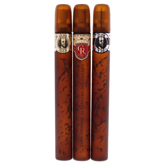 Cuba Trio 1 by Cuba for Men - 3 Pc Gift Set 1.17oz Cuba Gold EDT Spray, 1.17oz Cuba Royal EDT Spray, 1.17oz Cuba VIP EDT Spray